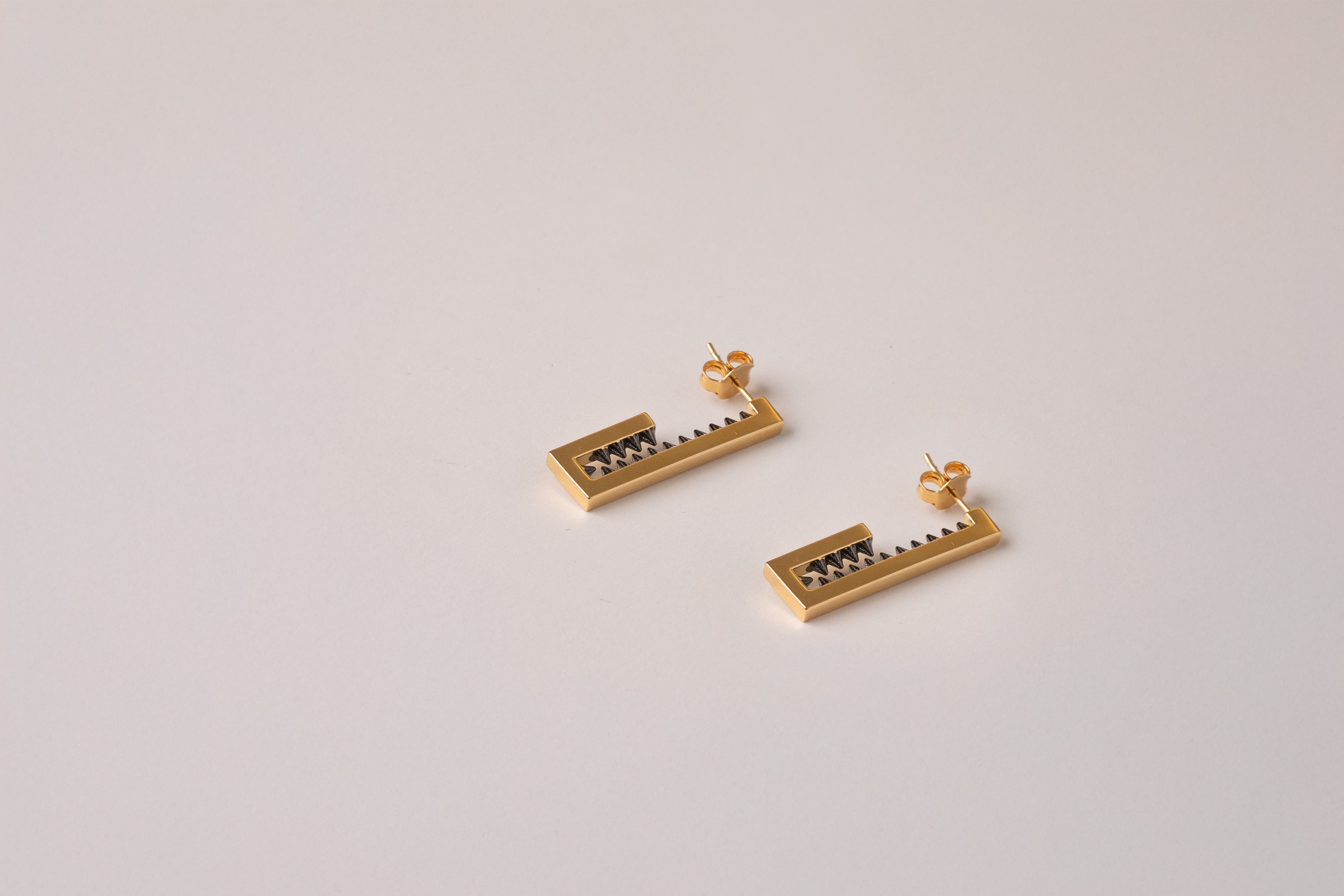 Inspired by the raw rhythm of city life—from subway screeches to rooftop sunsets—these earrings channel the grit and glow of the streets. Handcrafted in recycled sterling Silver and finished with high-polish 14K Gold, they’re a bold homage to movement, noise, and unapologetic edge.